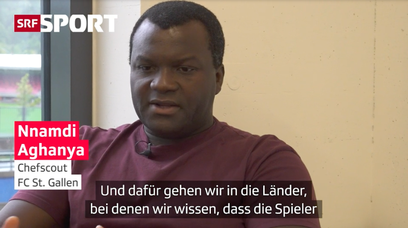 Wie findet ein Super-League-Verein geeignete Spieler? In einem interessanten Clip von SRF besucht der SRF-Experte Kay Voser den St. Galler Chefscout Nnamdi Aghanya und fragt ihn nach den Geheimnissen des Spieler-Scoutings. Für den FC St. Gallen arbeiten derzeit achts Scouts.